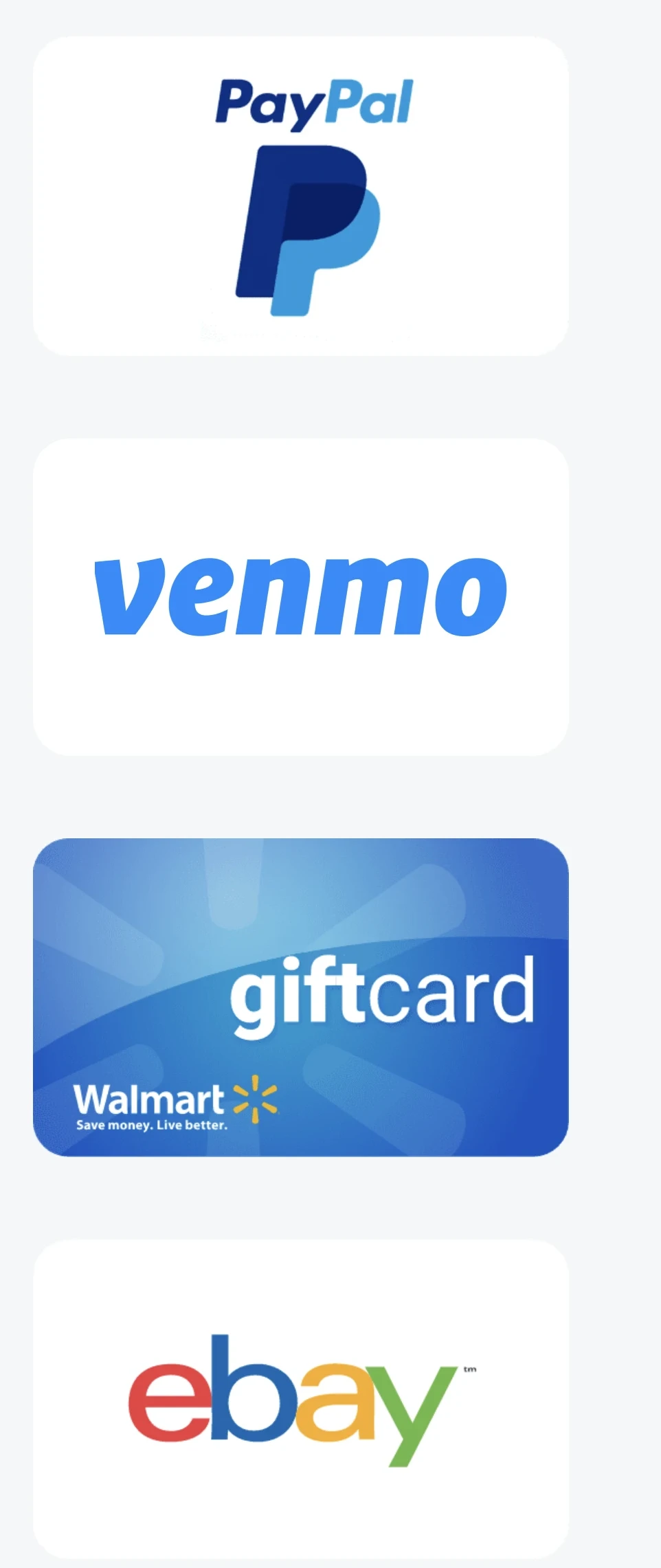 Cast out methods: PayPal, Venmo, plus gift cards.