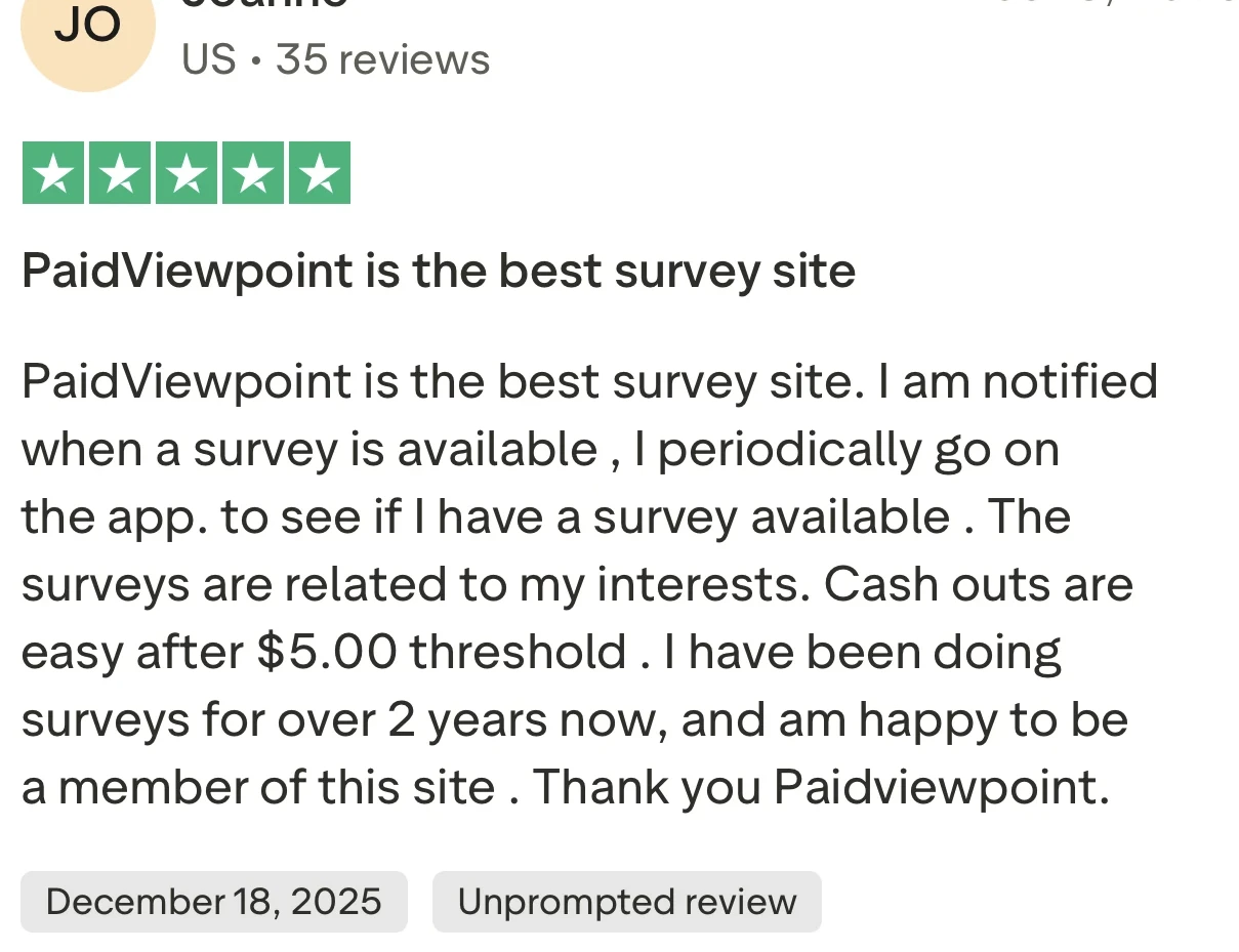 Get paid to take simple surveys—join PaidViewpoint here.”